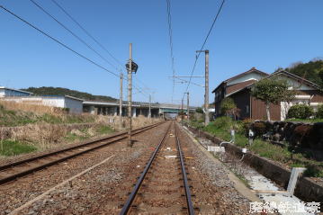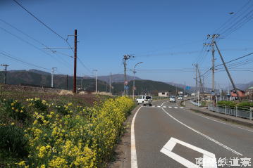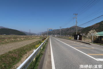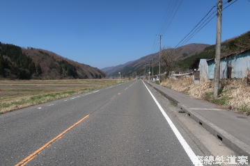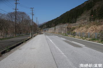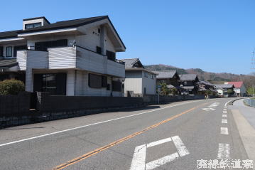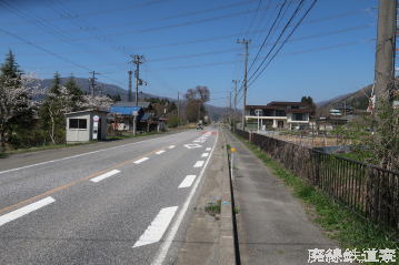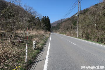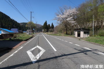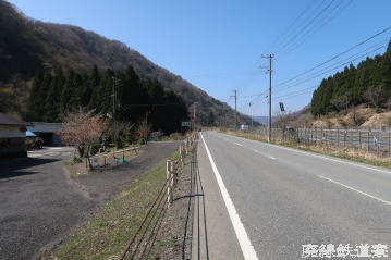 上り勾配が続き、中ノ郷駅跡から1.5キロ程で今市地区だが、廃線跡らしく道路際の住宅の門がこちらを向いていない。さらに北上し、徐々に視界の両側から山が迫ってくる。