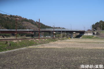 このあたりで線路跡は北陸自動車道に呑み込まれているようだ。谷が狭くなっている上に小谷集落があるので高速道路用地になったのだろう。