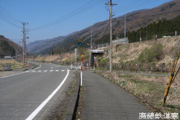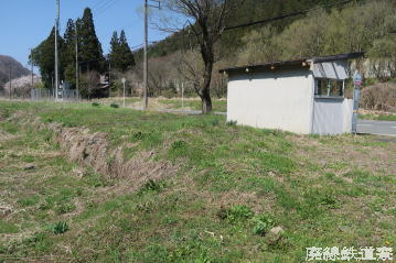 柳ヶ瀬駅跡から2キロ程で雁ヶ谷駅跡となる。周囲に民家はない。この先は下り勾配に転じる。