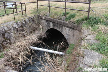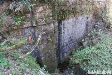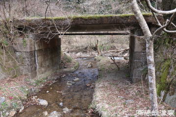刀根駅跡から1キロ程で北陸自動車道の北側に路盤が出てくる。小橋梁がある。橋台は石積みである。