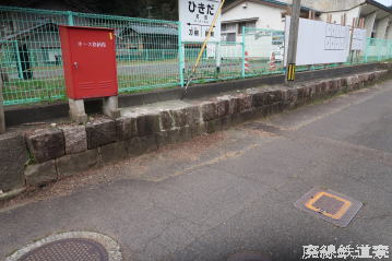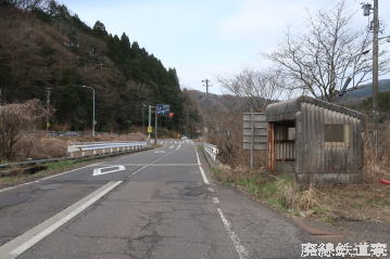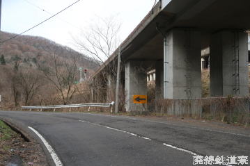 この先刀根の集落に入り、線路跡は高速道路になっているので判らない。このあたりで本線と合流し引上線が平行していたのだろう。