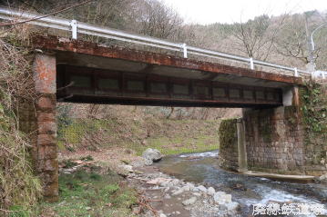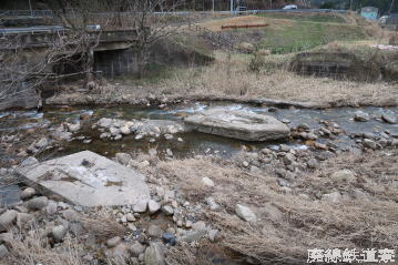 さらに笙の川を渡るが橋脚の基礎が残り、水圧を低減する形状になっている。写真右上に橋台もある。